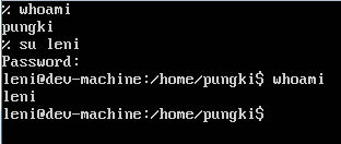 whoami 命令和 id -un 有相同的输出。它们都显示出当前用户的用户名。